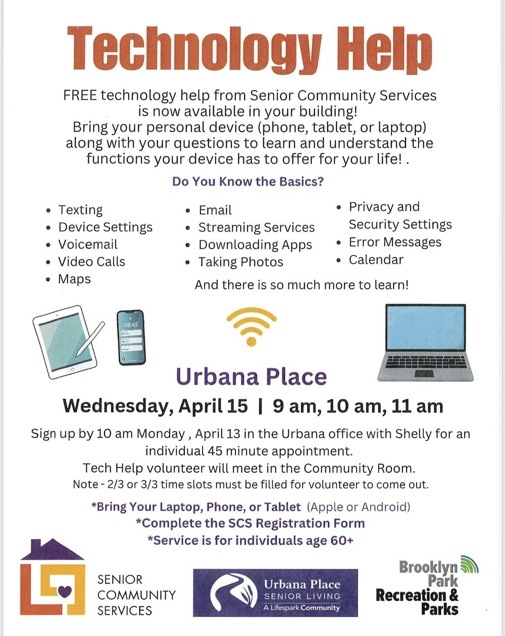 FREE technology help from Senior Community Services is now available in your building!